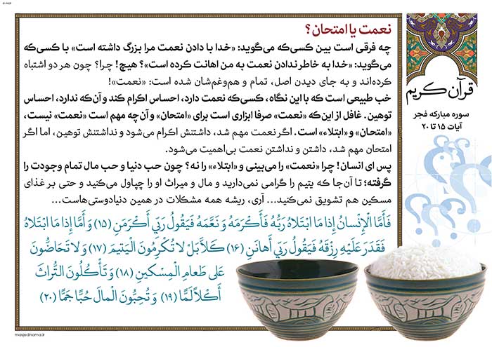 تدبری در سوره مبارکه فجر (3) - نعمت یا امتحان ؟