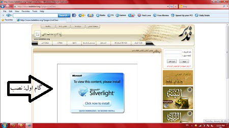 برای بار اول که صفحه باز می شود سیستم به صورت خودکار از شما می خواهد که نرم افزار silverlight را نصب کنید.
